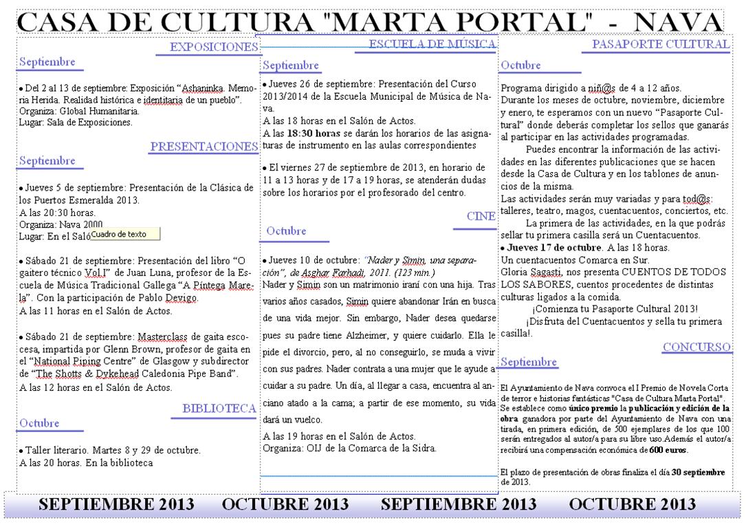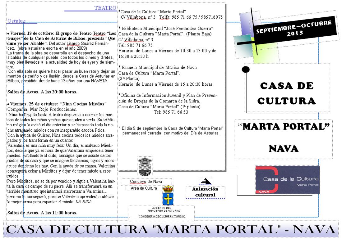 Programación de los meses de septiembre y octubre en la Casa de Cultura "Marta Portal" - ayto-nava